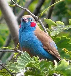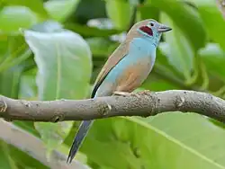 V tomto článku byl použit překlad textu z článku Red-cheeked cordon-bleu na anglické Wikipedii.