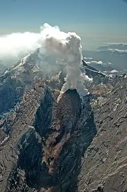 Materiál z vulkánu tvořila hlavně vodní pára spolu s menším množstvím oxidu uhličitého a oxidu siřičitého. Další studium vzdušným monitoringem zjistilo, že materiál nebyly příliš oxidován a v malé koncentraci obsahoval sulfáty (méně než 20 %).