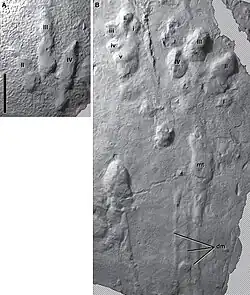 - ↑ Gierlinski, G. (1991). New dinosaur ichnotaxa from the Early Jurassic of the Holy Cross Mountains, Poland. Palaeogeography, Palaeoclimatology, Palaeoecology, 85: 137-148.
