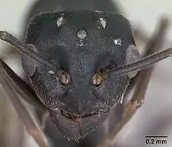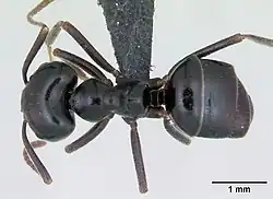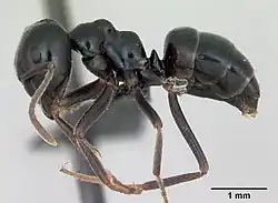 Mravenec černolesklý (Lasius fuliginosus) je smolně černý a velice lesklý mravenec. Má velkou hlavu, která je vzadu hluboce vykrojena (hlava připomíná tvarem srdce). Charakteristicky zapáchá a je označován jako pěstitel hub, stavějící si kartonová hnízda.