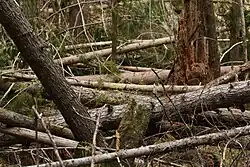 - ↑ Mrtvé dřevo by mělo obsahovat i kůru, pokud je odkorněné, pak je to jen „sterilní dřevní hmota“ bez většího bioaktivního významu, hmota vcelku nezajímavá i jako zásobárna živin pro jiné organismy.[1][2]