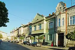 ![]() ![]() ![]() ![]() ![]() Po směru hodinových ručiček počínaje obrázkem nahoře: hrad Palanok, Ruské dramatické divadlo, domy v ulici Ilony Zirni, bývalá budova obchodní akademie, Katedrála Nanebevzetí Panny Marie, Mukačevská radnice a hotel Zirka, Banka | |