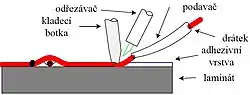 Jádro plošného spoje tvoří substrát s vodivým obrazcem vyrobeným klasicky jako u běžných plošných spojů (např. vyleptáním do měděné fólie nebo kombinací chemického a elektrolytického pokovování). Tyto vodivé cesty mají funkci napájecí. Na jádro se nanese adhezivní vrstva, do které jsou pokladeny a zamáčnkuty tenké izolované vodiče o průměru 100 - 2,5 µm a elektrické pevnosti 2kV. Na adhezivní pastu s vodiči se pak přiloží prepreg a deska se zalaminuje. V tomto okamžiku je možné položit další vrstvu adhezivní pasty a vytvořit další vrstvu vodičů. Dále se s deskou může pracovat jako s klasickým plošným spojem - vytvoření otvorů, pokovení otvorů atd.