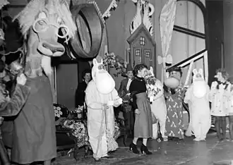 Fotografie z premiéry představení Muminek a kometa v helsinském Svenska Teatern roku 1949