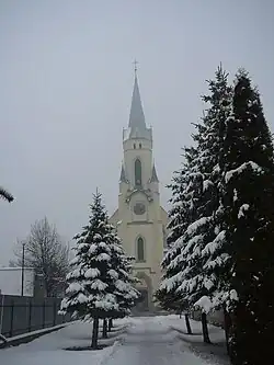 Dominantou obce je římskokatolický kostel svatého Jiří postavený Coburgy v neogotickém stylu v roce 1894. V obci je i římskokatolická kaplička Panny Márie Sedembolestnej z roku 1890. K výrazným architektonickým památkám patří i barokně-klasicistická fara, klasicistická budova hotelu Koruna a klasicistické současné sídlo obecního úřadu z roku 1800.