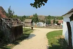 Muzeum vesnice je vytvořeno ve formě řadové obce. Jedná se o tradiční architektonickou formu uspořádání staveb podél potoka (nebo cesty) sahající až do roku 1000 př. n. l. Domy jsou obdélníkového tvaru. Skládají se z bytové jednotky, stájí, podlouhlé kůlny (chléva) a venkovních budov.