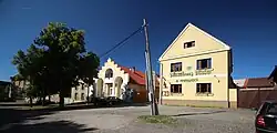 ![]() Mutějovice, Velká Strana, vlevo kostel svatého Václava | |
