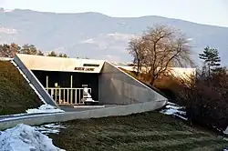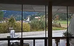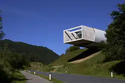 Budova je tvořena pohledovým betonem a ocelí, což bylo Liaunigovým přáním. Z velké části je zasazena do vrcholu kopce, ale zároveň je také prosvětlena přirozeným střešním světlem. Na obou koncích budova vyčnívá nad násep, na jedné straně má vyhlídkovou terasu.