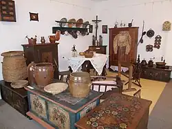 Expozice vychází z bohatého fondu muzea, který obsahuje množství předmětů z 19. a 20. století využívaných v místních usedlostech a chalupách. Vystaveny jsou předměty dokumentující běžná venkovská řemesla (kováře, koláře, ševce) i místní speciální výroby (dřevovýroba v Pecínově). Nejvíce dokladů je spojeno se zemědělstvím – pěstováním zemědělských produktů a chovem domácích zvířat. Vystaveno je množství předmětů související se zpracováním zemědělských produktů a přípravou potravin v domácnosti (síta, máselnice, formy na máslo, lisy na tvaroh). Expozice obsahuje náznakovou světnici s nábytkem a vybavením ze druhé poloviny 19. století.