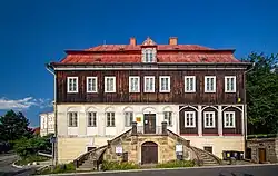 - ↑ Katalogové číslo: 1000163799; kulturní památka – rejstříkové číslo ÚSKP 50373/5-5871.[2] Díky pozdně barokní architektuře, kulturně–historickému backgroundu a jistému „sklářskému“ geniu loci je areál domu velmi historicky ceněný.[6] Kromě budovy samotné jsou památkově zajímavé dochované sklípky a ohradní zeď v těsné blízkosti objektu.[6]