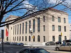 Hlavní budova je pětikřídlá stavba na půdorysu písmene "E" ve stylu řeckého novoklasicismu. Byla postavena z dolomitu lámaného v Minnesotě.[2] od roku 1919[3] a první část byla dokončena na počátku roku 1928.[1] Tympanon jižního průčelí budovy vyzdobili sochaři C. Paul Jennewein a F. Solon polychromovanými sochami řeckých bohů a bohyní. Naproti hlavnímu sídlu muzea byla postavena Perelmanova budova.