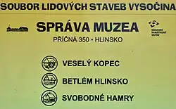 Označení muzea na budově sídla v Hlinsku, v letech 1997 až 2018 pod názvem Soubor lidových staveb Vysočina