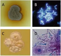 - ↑ a b c d e f g AHMED, Amel Altayeb; SANDE, Wendy van de; FAHAL, Ahmed Hassan. Mycetoma laboratory diagnosis: Review article. PLOS Neglected Tropical Diseases. 2017-08-24, roč. 11, čís. 8, s. e0005638. Dostupné online [cit. 2020-01-03]. ISSN 1935-2735. doi:10.1371/journal.pntd.0005638. PMID 28837657. (anglicky)