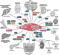 Fyzická aktivita má skrze myokinovou signalizaci vliv i na nervovou tkáň, dochází ke vzniku histonových modifikací a syntéze proteinů, které jsou schopné ovlivnit náladu, kognici a zlepšit spánkovou kvalitu.[7][8]