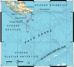 Jižní oblast Jižní Ameriky včetně mysu Horn, Drakeova průlivu a Jižních Shetland