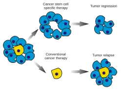 Pokud část nádorových kmenových buněk odolá chemoterapii, snadno dochází k relapsu (návratu) rakovinného bujení. Přitom právě nádorové kmenové buňky obvykle odolávají velice dobře, protože neproliferují a slouží tudíž jako „pojistka“ pro nádor.[2]