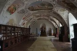 - Kaple sv. Václava je vybavená čtyřmi oltáři a kazatelnou v raně barokním slohu, mezi nimi jsou volně zavěšené další obrazy; hlavní oltář sv. Václava; oltář Panny Marie Pomocné (s kopií renesanční madony Lucase Cranacha st. z katedrály v Pasově; oltář s obrazem sv. Lukáše malujícího Pannu Marii; obraz je replikou nebo kopií slavného obrazu italského mistra Guercina z let 1653–1655.[21]