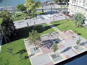 V současné době (2025) má náměstí podobu mimoúrovňové křižovatky, která přiléhá k Alžbětinu mostu. Umístěn je zde památník Pochodu živých maďarsky Élet menete) a zastávka autobusové a tramvajové dopravy. Jsou zde také pozůstatky římského Contra-Aquinica. Hlavní dominantou je potom tzv. Staroměstský kostel.