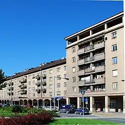 Na náměstí se nachází mnoho domů z 20. století, které mají většinou 3–4 patra. V přízemí se nachází obchody a restaurace, v 1. až 4. patře se nachází byty.
