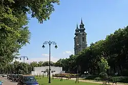 Stojí na něm Bazilika Terezie z Ávily a také Gymnázium Dezső Kosztolányiho. Zástavbu tvoří potom především niží domy.