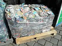 Balík nápojových kartonů připravený ke transportu a zpracování.