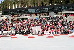 ![]() Skokanský můstek Holmekollenbakken s okolními tribunami pro diváky | |