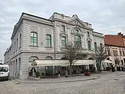 Budova stojí v místě původního zájezdního hostince ze 17. století. Podle legendy zde strávil noc také polský král Jan III. Sobieski. Do své nynější secesní podoby byl dům přestavěn začátkem 20. století a až do konce 2. světové války nesl název Grüner Baum (Zelený strom).[2] Po válce byl přejmenován na Národní dům. Později se zde pořádaly diskotéky.