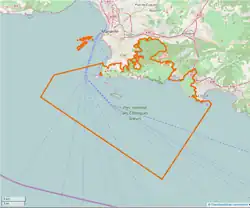 Na západě park přiléhá k širší oblasti Marseille, dále zahrnuje městečka Cassis a La Ciotat, ochranná zóna ještě Penne-sur-Huveaune. Ochrana se vztahuje i na massif des Calanques, souostroví Frioul (před vjezdem do Marseille) a Riou, ostrov Verte a pahorky na mysu Cap Canaille.