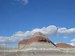 ![]() Pohled na hory, pojmenované kvůli svému tvaru "Týpí", angl. "Tepee" | |