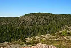 Listnatý les však zabírá pouze 42 ha, což je jen 1,4 % rozlohy parku.[22] Les je tedy tvořen z drtivé většiny jehličnatým lesem, charakteristický pro skandinávský a ruský bioregion tajga.[23] Roste tu hlavně smrk ztepilý (Picea abies), ale na hranici s bezlesím je hlavní druh borovice lesní (Pinus sylvestris).[24] Smrk tu převažuje, protože lesní požáry jsou méně časté než dříve; ve skutečnosti bříza a borovice lesní jsou prvními druhy, které by se po požáru vrátily.[25] Zdá se, že k požárům dříve docházelo přirozeně v průběhu století, ale nebyl tu už dvě stě let, jelikož lidé aktivně bojují proti jejich šíření.[25] Maximální věk stromů v lese je 100 let, ale některé borovice dosáhly věku 500 let, pokud byly zvláště nepřístupné, a tak ušetřené dřevorubci.[25] Během posledních 100 let však les částečně obnovil své bohatství, které charakterizují různověké stromy.[26]