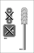 • 901: 'neplatné návěstidlo' na návěstidle je osazen černo-bílý kříž |