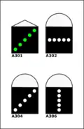 Předvěsti typu L jsou tvořena několika barevnými světly umístěnými na čtvercové nebo obdélníkové desce. | |