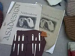 - ↑ WESTMAN, BERIT, 1939-. Nålbindning : 12 varianter. Västerås: Tumvanten 24 s. ISBN 978-91-970550-0-0.
