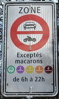 Ve Francii je vjezd do nízkoemisních zón povolen na základě ekologických známek Crit'Air, které rozlišují vozidla do šesti kategorií, očíslovaných buď číslicemi od jedné do pěti, nebo speciální zelenou známkou pro elektromobily.