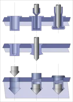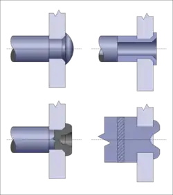Další možností vytvoření závěrné hlavy je lisování nebo rozválení. Ocelové nýty do průměru 10 mm a všechny neželezné nýty nebo z lehkých kovů se nýtují za studena.[15]