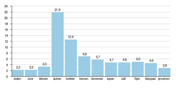 Průměrné měsíční průtoky řeky ve stanici Cheremshanka (172 km od ústí) v letech 1940 až 1989:[2]