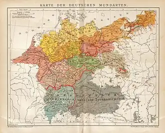Základní členění nářečí v němčině je podle stupně druhého posouvání hlásek v jihoseverním směru:
