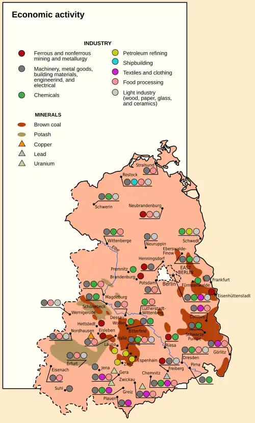 - ↑ Business America. (27 February 1989). German Democratic Republic: long history of sustained economic growth continues; 1989 may be an advantageous year to consider this market – Business Outlook Abroad: Current Reports from the Foreign Service.. Business America. 1989. Dostupné v archivu pořízeném z originálu dne 9 November 2007.