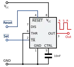 - ↑ a b HÁJEK, Jan. 2x časovač 555. Praha: BEN - technická literatura, 1998. ISBN 80-86056-27-9. Kapitola 1, s. 7.