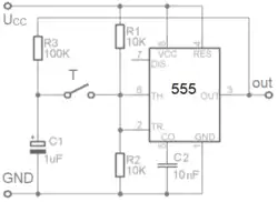 - ↑ HÁJEK, Jan. 2x časovač 555. Praha: BEN - technická literatura, 1998. ISBN 80-86056-27-9. Kapitola 2.3, s. 12.