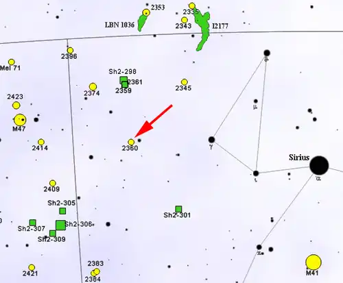 - ↑ a b c d e SIMBAD Astronomical Database: Results for NGC 2360 [online]. [cit. 2016-04-06]. Dostupné online. (anglicky)