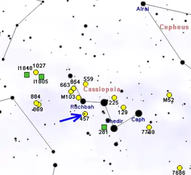 - ↑ a b c d e SIMBAD Astronomical Database: Results for NGC 457 [online]. [cit. 2019-12-11]. Dostupné online. (anglicky)
