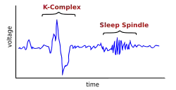 Povrchní spánek, v EEG lze vidět aktivitu voltáže frekvence 3-7/s.[4]