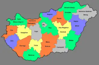 | Části státu (Országrész) | Kód | Region (Régió) | Kód | Župa (Megye) | Kód |