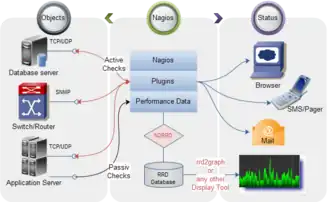 Původně se projekt nazýval Netsaint, ale v roce 2002 byl přejmenován na Nagios. Nagios je nástroj, který umožňuje monitorovat počítačovou síť a v ní poskytované služby a v případě výskytu problému okamžitě informovat administrátora, který tak může rychle zasáhnout. Monitorovací služba periodicky spouští kontroly specifikovaných koncových uzlů a služeb. Používá k tomu externí moduly, které oznamují výsledek kontroly hlavnímu modulu Nagiosu. Pokud se vyskytne problém, služba pošle upozornění na předdefinované kontakty pomocí různých typů komunikace (e-mail, SMS, nebo online zprávy – např. ICQ). Aktuální stav, historii záznamů a další výstupy jsou přístupné přes webové rozhraní.