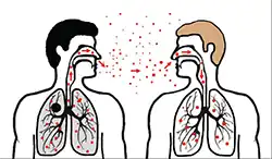 - kapénkový přenos – částicemi většími než 5 μm, které zůstávají ve vzduchu krátký čas, většinou za přítomnosti hostitele