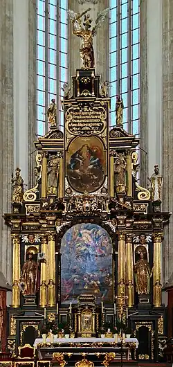 Po skončení třicetileté války začali měšťané hojně zřizovat oltáře v novém barokním slohu. Mezi ně patří i hlavní oltář v kostele Matky Boží před Týnem, který byl i symbolickým poděkováním pražanů Matce Boží za ukončení dlouhého válečného konfliktu a za uhájení Prahy před Švédy v roce 1648, podobně jako Mariánský sloup na Staroměstském náměstí. To potvrzuje i nápis, který se nachází v horní části oltáře, v kartuši pod podstavcem sochy Archanděle Michaela: