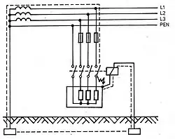 - ↑ a b MORAVEC, Jan. Elektrické ochrany v soustavách nízkého napětí - 3. díl: Proudový chránič. oEnergetice.cz [online]. OM Solutions s.r.o., 2017-04-02 [cit. 2022-04-28]. Dostupné online.