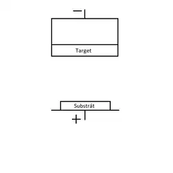 Naprašovaný materiál (target) je zapojen jako katoda, na kterou je přiváděno stejnosměrné nebo vysokofrekvenční elektrické napětí. Protože se target silně zahřívá, připevňuje se zpravidla na měděnou vanu s vodním chlazením.[2]