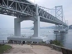 Přes průliv se klene most Ónaruto, jižní část mostu Akaši-Kaikjó.